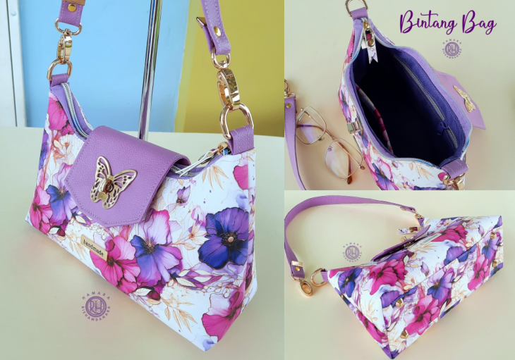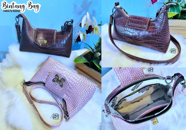 The Bintang Bag is a compact handbag designed for everyday use. It features both a zipper pocket and a slip pocket on the inside, providing ample space for a variety of items. This pattern is available in only one size, but you can scale it up to 112% to create a larger bag. The bag is constructed using the birthing method to assemble the interior and exterior.