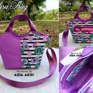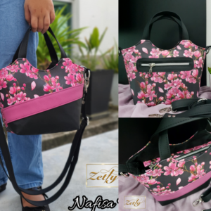 Nafisa Bag has a top handle, recessed zipper opening, back zip pocket with overlay technique, zip pocket and slip pocket in the lining. The bag size is suitable for those who love to wear smaller bags and the wide bottom makes the bag interior spacious. There are three forms of front panels to choose. You can choose either Triple Block, Double Block, or Plain front panel.