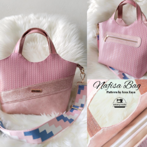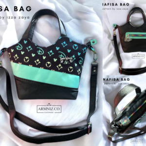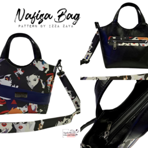 This bag can be sewn using any non-woven fabric including Waterproof Polyester Cotton, Heavy Cotton, Denim, Jeans, Canvas, Polycanvas, etc. Nafisa Bag uses Cotton and PVC Leather on the Exterior and 600D Waterproof Polyester for the Lining for this sewing guide.