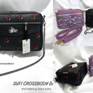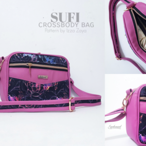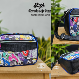 The Sufi Crossbody Bag features three exterior zippers: two zippered pockets on the Main Panel for easy access to your essentials and one main zipper that secures the main compartment. With ample space inside, this bag can comfortably hold a wide range of personal items, including a long purse, making it perfect for everyday use. Additionally, if you prefer a more compact version of this bag, you can print the pattern on a smaller scale to achieve a reduced size that maintains its chic design.